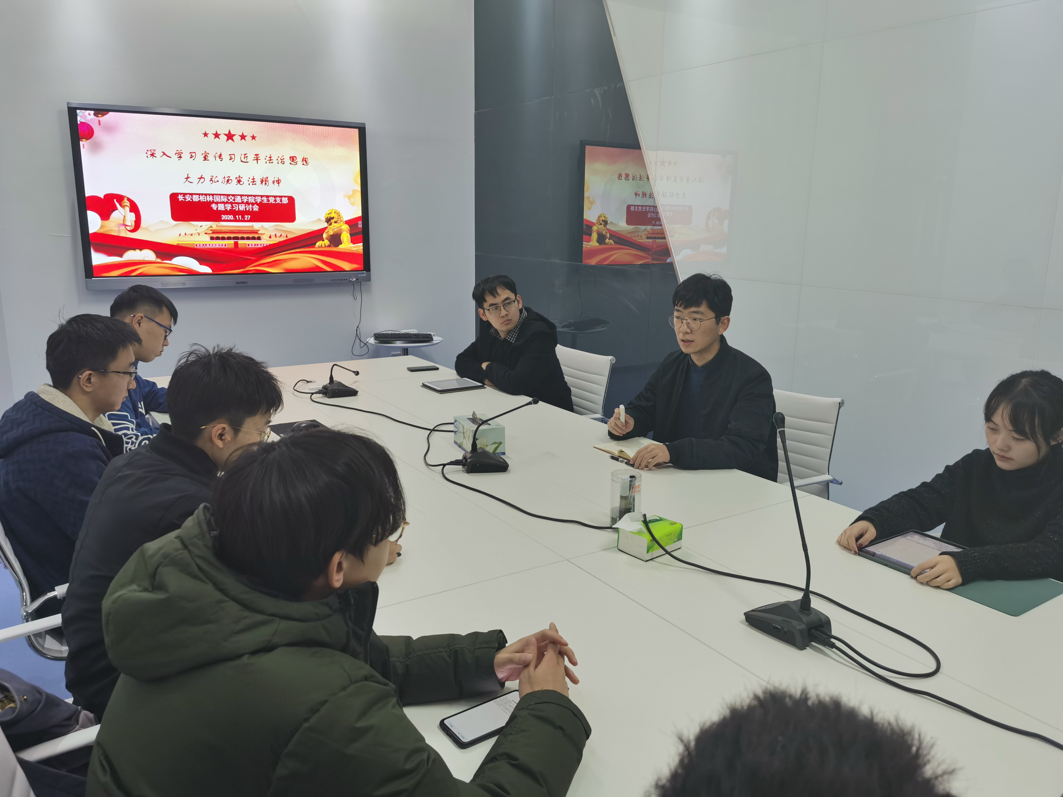 学生党支部在鸿远教学楼五楼会议室举办“深入学习宣传习近平法治思想,大力弘扬宪法精神”专题学习研讨会,学生党支部全体党员和发展对象参与了本次研讨会。会议由学生党支部书记孙士强主持。