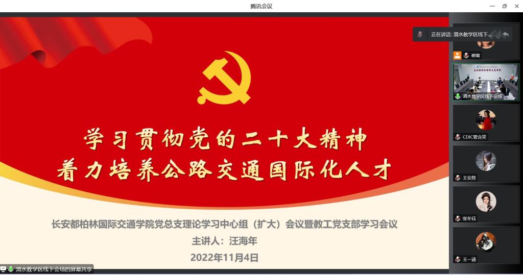 在鸿远教学楼四层会议室以线下线上相结合的形式召开“学习贯彻党的二十大精神”专题理论中心组(扩大)学习暨教工党支部理论学习会议,集中学习《习近平:高举中国特色社会主义伟大旗帜,为全面建设社会主义现代化国家而团结奋斗——在中国共产党第二十次全国代表大会上的报告》。24直播网