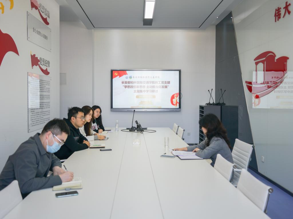 教工党支部于鸿远教学楼五层党建活动室组织开展“学思践悟新思想 主动担当促发展”主题集中学习研讨活动。