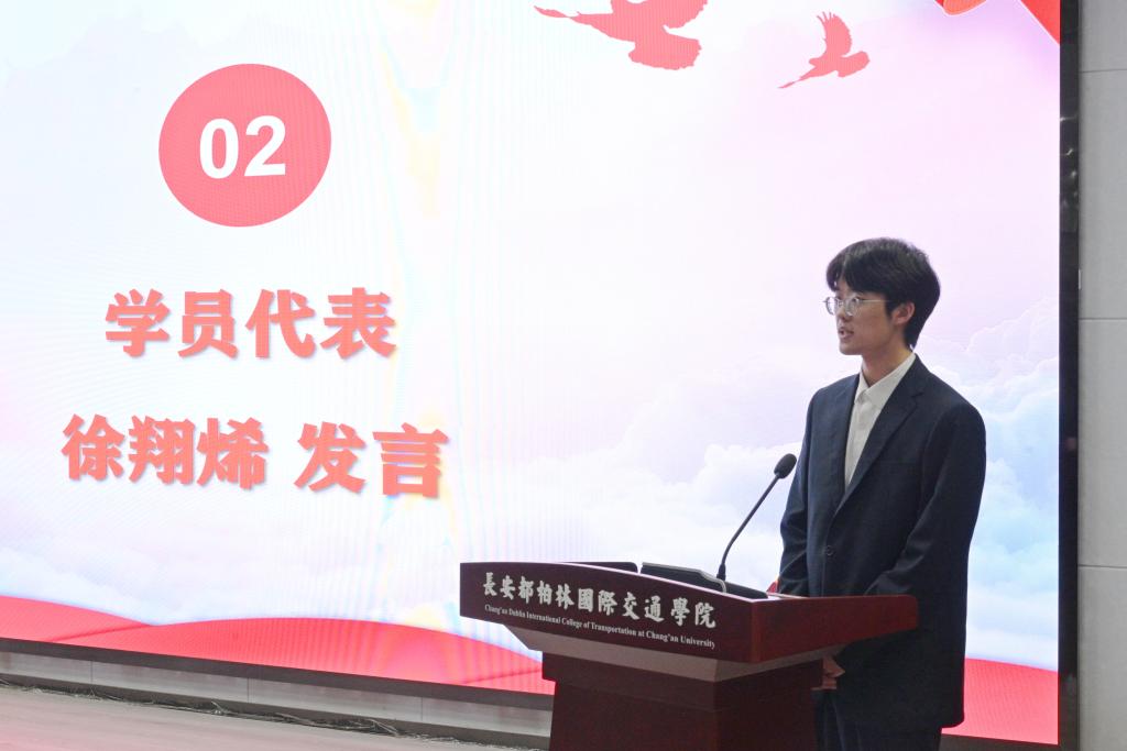 学员代表2023级车辆工程专业徐翔烯同学发言,他表示,将严格遵守纪律,不断提高认识,进一步在思想理论和行动实践上提升自己,努力成为一名合格的共产党员。