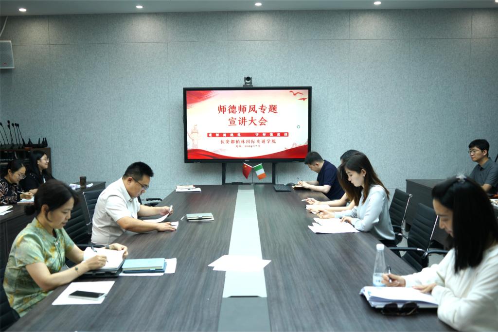 召开师德师风专题宣讲会议。会议由院长张久鹏主持,副书记张艳萍、副院长贺燕飞、24直播网