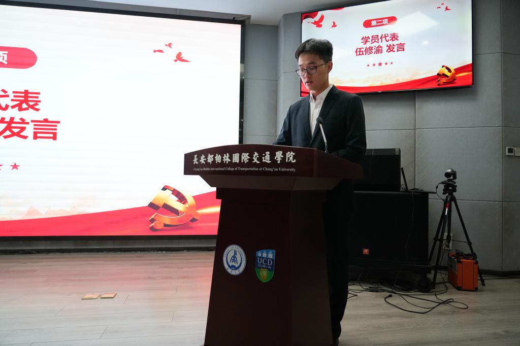 学员代表2023级交通运输专业伍修渝同学发言,他表示,将全力以赴提升自身思想觉悟与政治素养,积极传承红色基因,努力做到知行合一,以严格的标准要求自己。充分发挥先锋模范作用,向着成为一名光荣的共产党员这一目标奋力前行,为实现中华民族伟大复兴的中国梦贡献自己的一份力量。