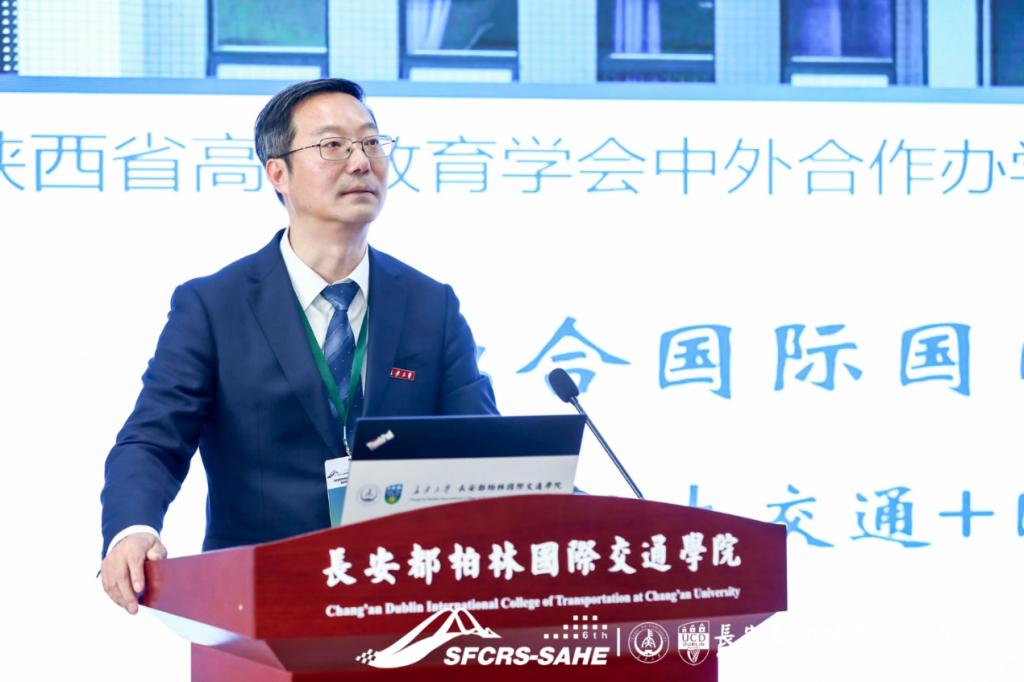陕西省教育厅副厅长刘宝平,教育部国际司涉外办学与监管处副处长王婧瑶,中国教育国际交流协会学术交流与研究部主任唐振福,陕西省高等教育学会中外合作办学分会会长王军哲,长安大学校长沙爱民,爱尔兰都柏林大学校长Andrew J. Deeks,长安大学副校长赵祥模,省高教学会副会长姚聪莉及来自省内外50余所高校,中外合作办学机构和项目的负责人、中外合作办学分会专家委员会专家共240人参加了此次大会,会议采取线上线下相结合的方式进行。开幕式由陕西省教育厅外事处处长文通主持。