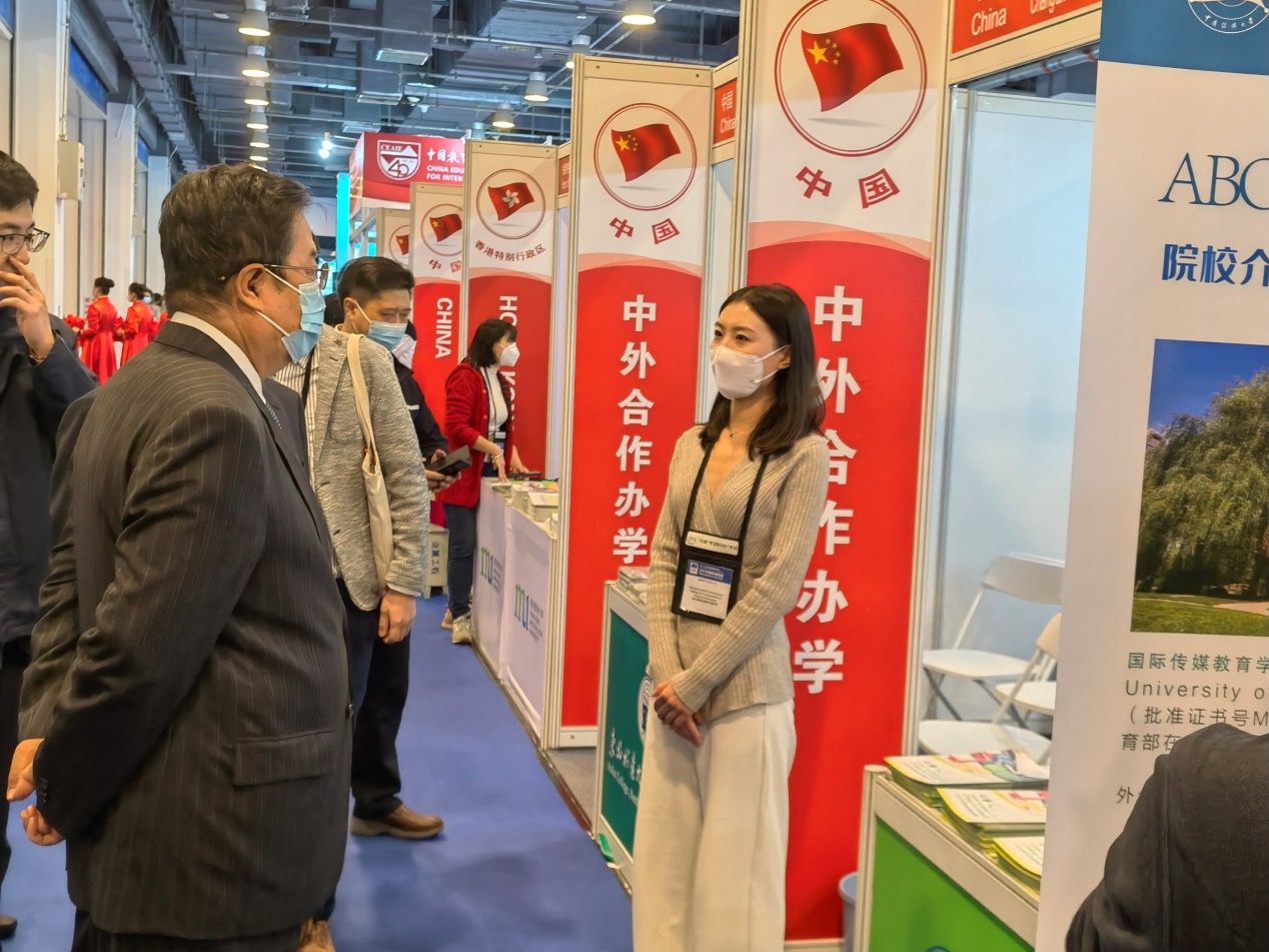 赴北京参加由中国教育国际交流协会主办的2021年中国国际教育展。中国教育国际交流协会会长、教育部原副部长刘利民,中国教育国际交流协会秘书长王永利一行出席活动,来自英国、加拿大、法国、新西兰等20多个国家和地区的近300所海内外院校参展。本次展会以“育新机,开新局,建设开放的高质量教育体系”为主题,旨在引进优质教育资源,开拓优质教育资源合作渠道,为全球跨境教育提供“中国样本”。