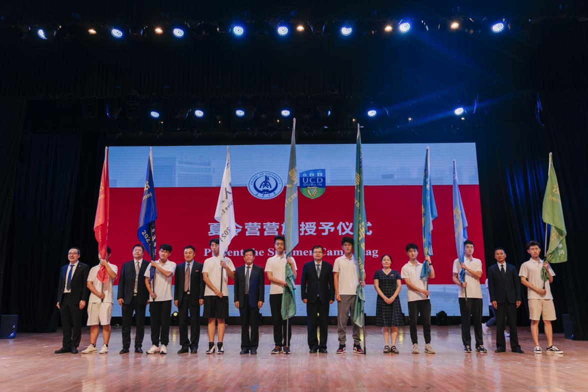 副书记、副院长姚以亮,共同上台为夏令营参训学生代表授予营旗。