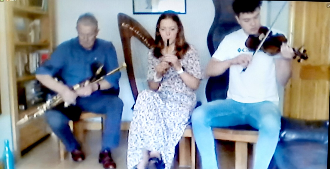 各年级学生积极参加了都柏林大学线上文化交流活动。本次活动的主题是爱尔兰传统乐器和爱尔兰舞蹈,都柏林大学爱尔兰语研究中心Clara主任与学长学姐们为同学们带来了传统乐器及舞蹈的介绍和演奏表演。