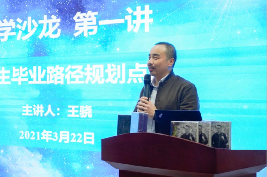 报告环节,王骁以大量数据统计结果和实例,从就业、保考研、创业和留学四个角度,向同学们展示毕业后的发展路径,以及在本科期间所应做出的准备。王骁指出,本科期间的学业成绩作为硬实力的体现对于各项发展路径都非常重要,但同学们同样需要提升软实力才能更好的追逐未来的发展目标。同学们需要根据个人目标,提早在科研项目、论文产出、资格证书、实习经历等领域积累成果,不断为自身赋能,提升个人核心竞争力,才能在毕业时交出满意的答卷。