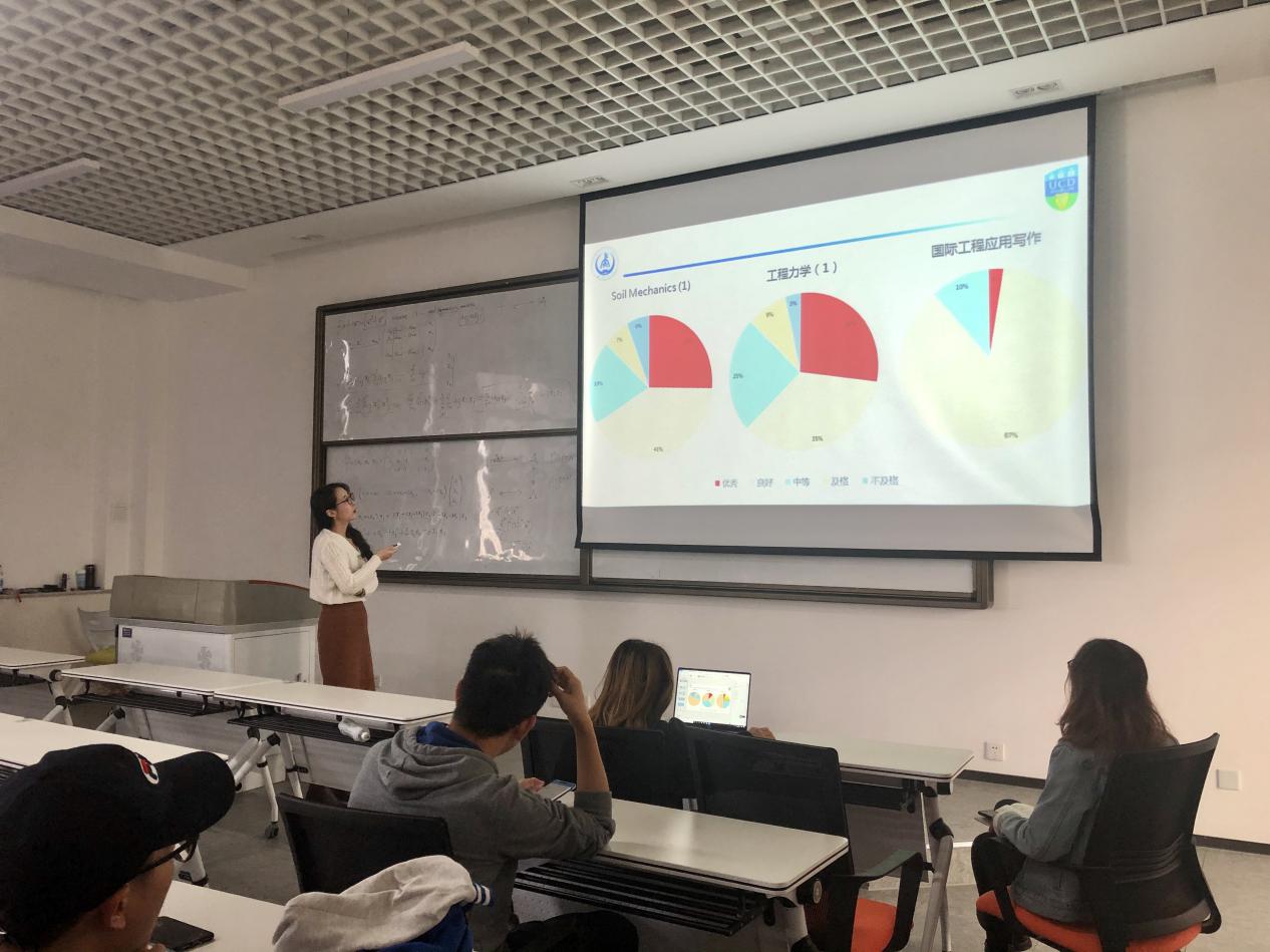 她重点向2018级同学展示了同学们GPA的分布情况,并强调,本学年的专业课学习至关重要,希望同学们尽早着手做好未来发展规划。同时,她还提醒同学们应充分重视学分问题,并为同学们解读了长安大学和都柏林大学学籍管理要点以及成绩复核流程。