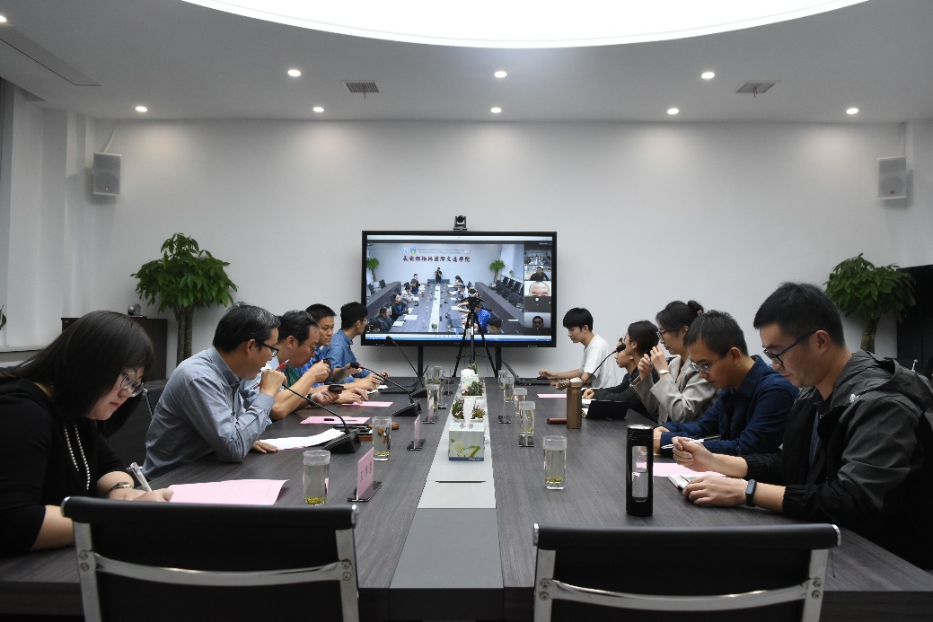 四楼会议室参加会议,新生家长共300余人在线参加了座谈会。