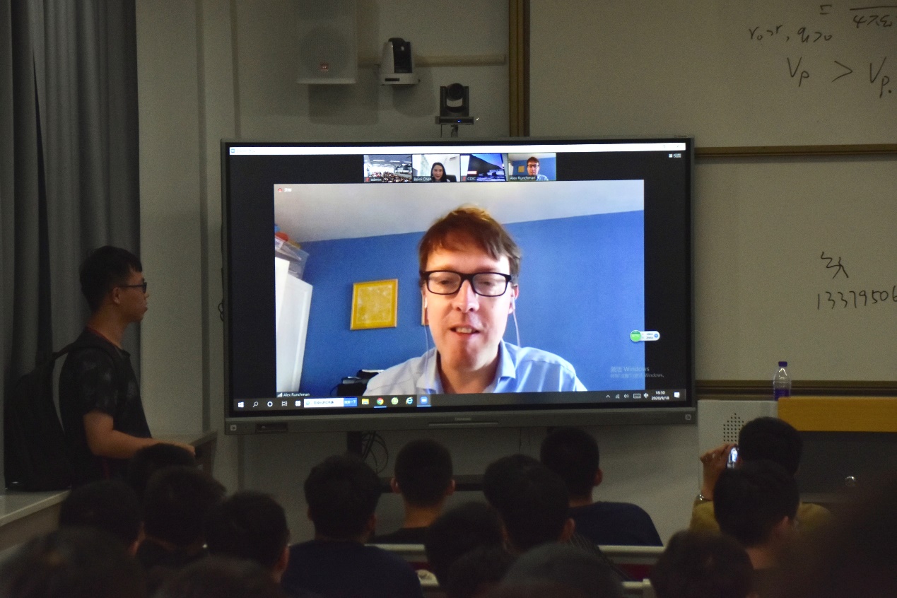 都柏林大学应用语言中心督导Alex Runchman向同学们介绍了都柏林大学线上课程教学平台Brightspace的使用方法及都柏林大学课程全过程评价制度。