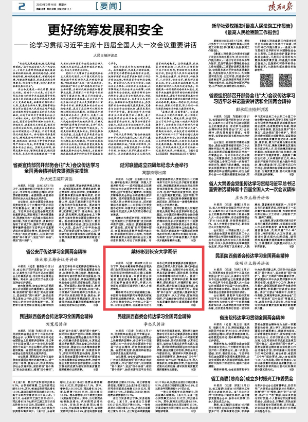 3月16日下午,副省长戴彬彬带领省级有关部门负责同志到长安大学调研。他先后到该校特殊地区公路工程教育部重点实验室、车联网联合实验室、国家绿色智慧公路交通重点实验平台进行调研,并深入24直播网