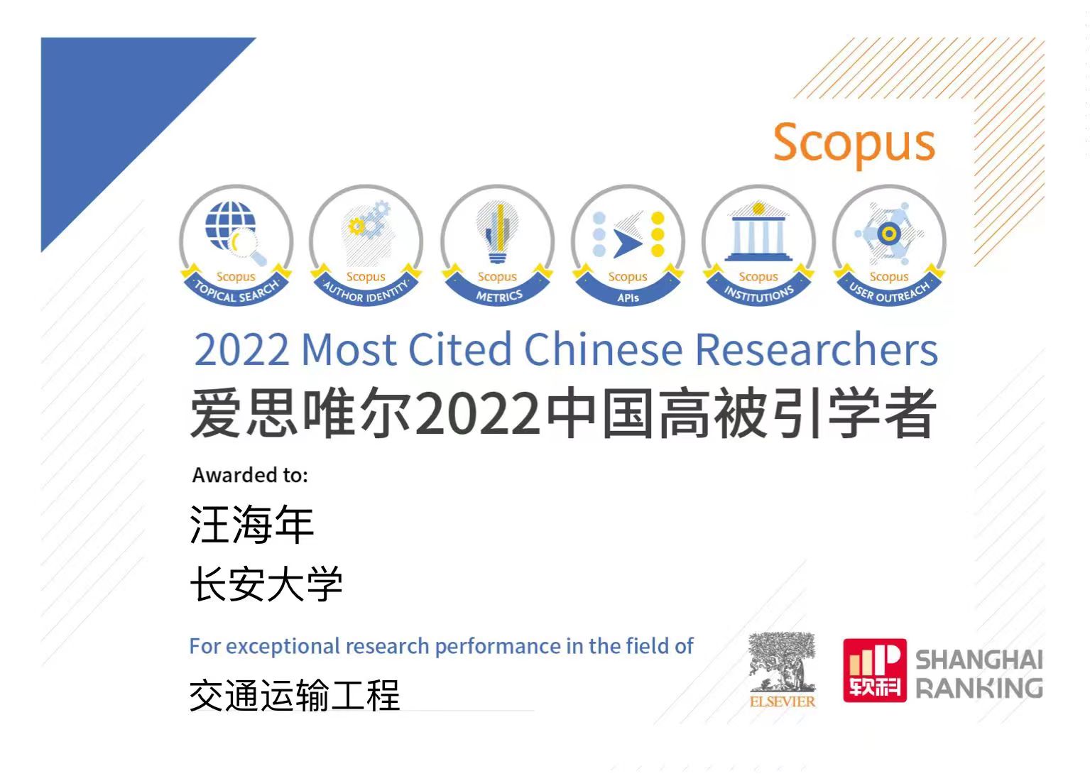 院长汪海年教授连续第三年入选爱思唯尔 “中国高被引学者”榜单。