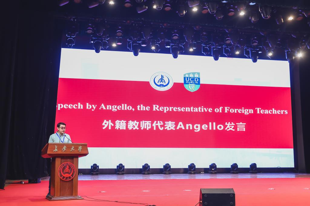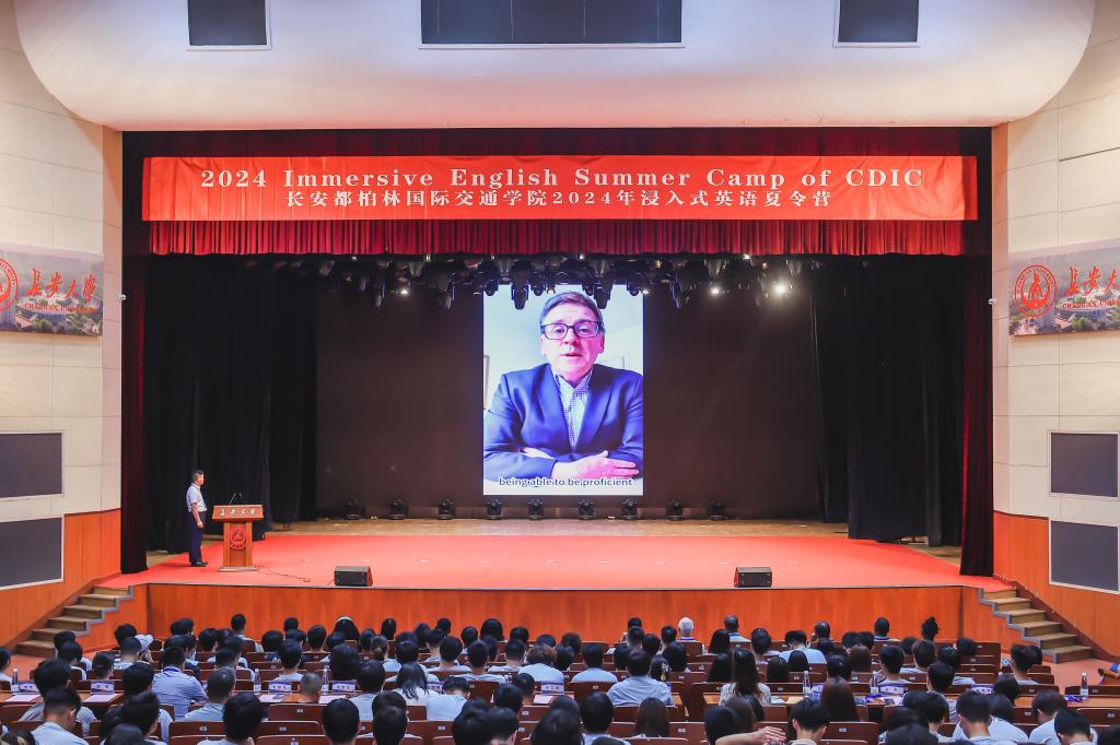 爱尔兰都柏林大学中国区教务长Paul Fanning通过视频致辞。他强调了浸入式英语夏令营对增强学生英语综合能力的关键作用,鼓励学生们把握与外籍教师和国际志愿者交流互动的宝贵机会,亲身体验多元文化的碰撞与融合,通过多样化、趣味性的教学活动,不断提升自身语言技能,努力在团队合作、公众演讲及国际视野上实现质的飞跃,多维度提升国际竞争力。