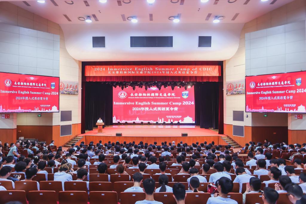 浸入式英语夏令营开幕式在北校区长安文化艺术中心大礼堂举行。24直播网