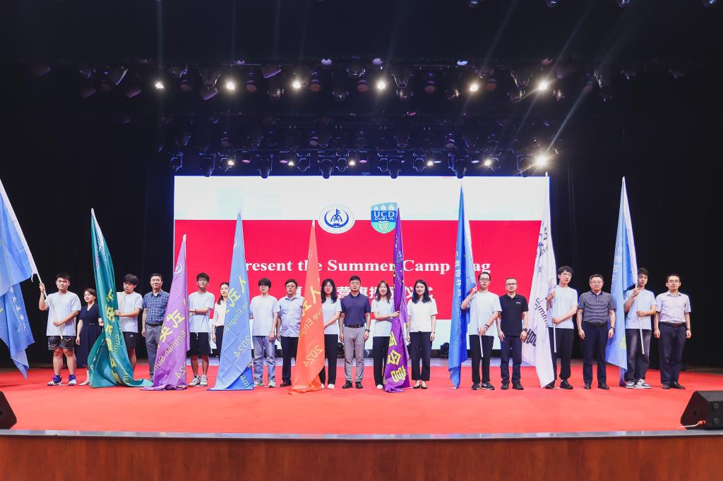 外籍教师代表Angello和学生代表吴卓依分别分享了对本次夏令营的感受与期待。与会相关领导、老师为夏令营参训学生代表授予营旗。夏令营承办单位负责人李光咸对夏令营总体安排做了介绍。