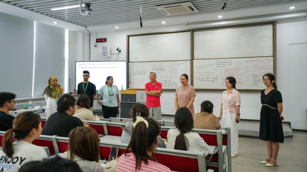 慰问期间,彪晓红走进教室,旁听夏令营课堂教学,并与师生亲切交流。彪晓红对外籍教师和国际志愿者的到来表示欢迎,并由衷感谢他们在夏令营活动期间的积极参与和辛勤付出。她指出,夏令营活动为同学们提供的一个全英文学习和交流平台,有助于大家拓宽国际视野、提高英语水平。她表示,希望同学们充分把握本次学习提升的宝贵机会,感受各国文化,体验多样的教学形式,全面提升英语听、说、读、写技能,为双语及全英文专业课程学习打下坚实基础。