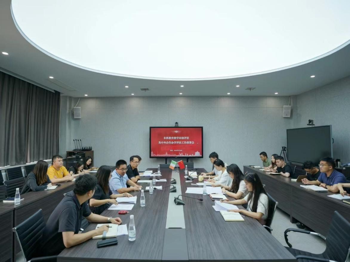 在鸿远教学楼四层会议室召开本科教育教学审核评估及中外合作办学评估工作部署会。24直播网