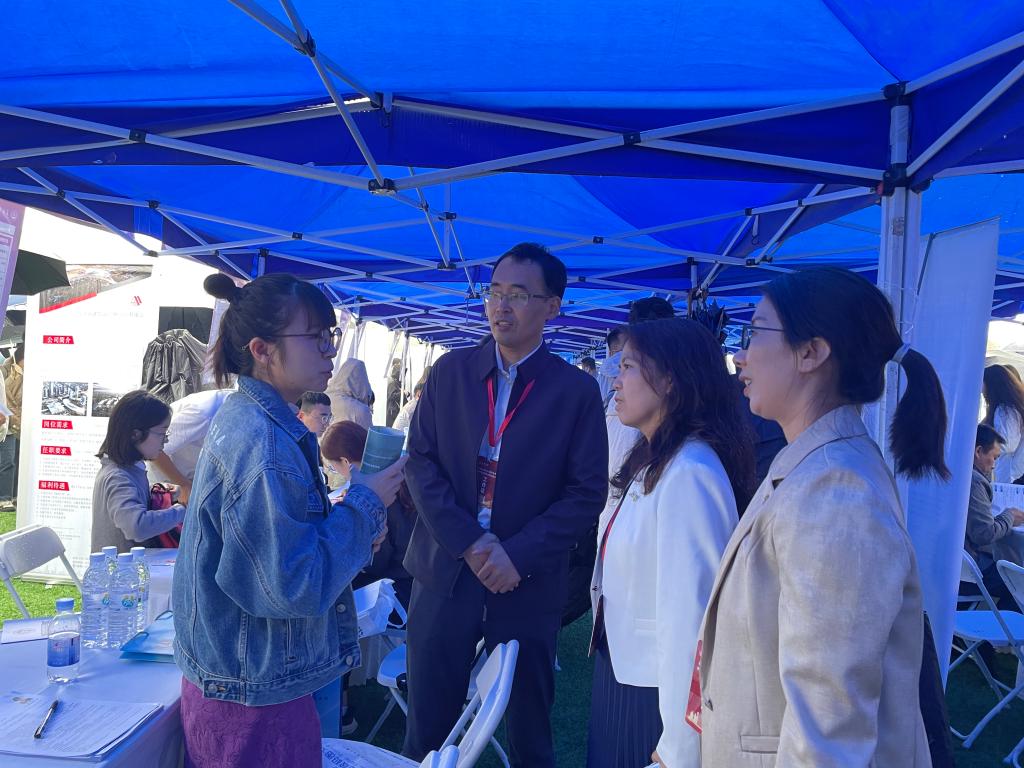 院长张久鹏、党总支书记赵亮、副书记张艳萍、副院长贺燕飞、副院长李程及学生事务部相关人员来到双选会现场,与参会单位深入交流,积极为学生实习和就业创造更加有利的条件与平台。24直播网