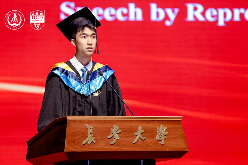 即将赴浙江大学攻读硕士学位的王俊哲同学作为毕业生代表感谢了学校和老师们的关心培养,分享了自己在长大的成长与收获,表示将以青春之我、奋斗之我,书写不负时代的青春华章。
