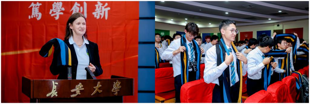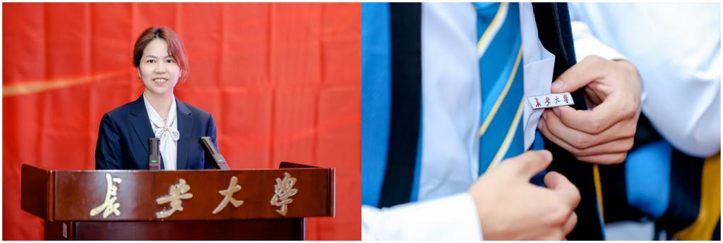 党总支副书记张艳萍主持长安大学校徽佩戴仪式。一枚枚校徽成了全体2025级新生继承和弘扬长大精神、与学校同奋进、与24直播网