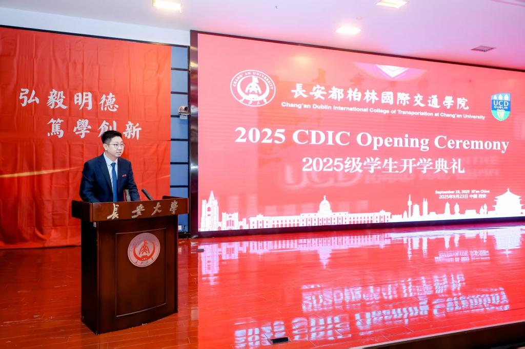 的一员。他表示,同学们将享有优质的国际化教育资源,并有机会赴都柏林大学交流。他鼓励同学们勤勉求学、积极适应,充分利用全英文授课与国际课程体系,掌握扎实的专业知识与工程能力,成长为具备全球视野与竞争力的“新工科+大交通+国际化”高端人才,为国家和世界的发展贡献智慧与力量。