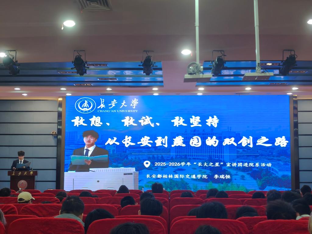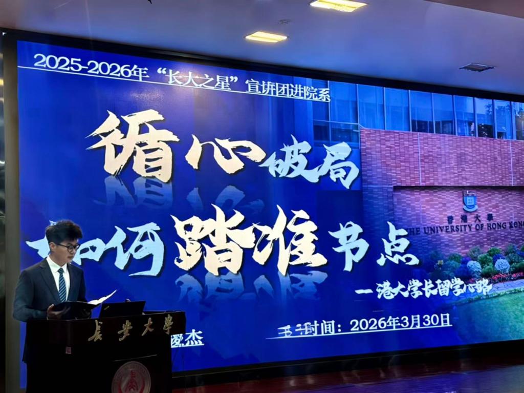 举办“长大之星”宣讲团进院系活动暨“朋辈论坛”第二十六讲。2025级全体本科生、辅导员张力雄、惠亦嘉参加宣讲会。活动由张力雄主持。