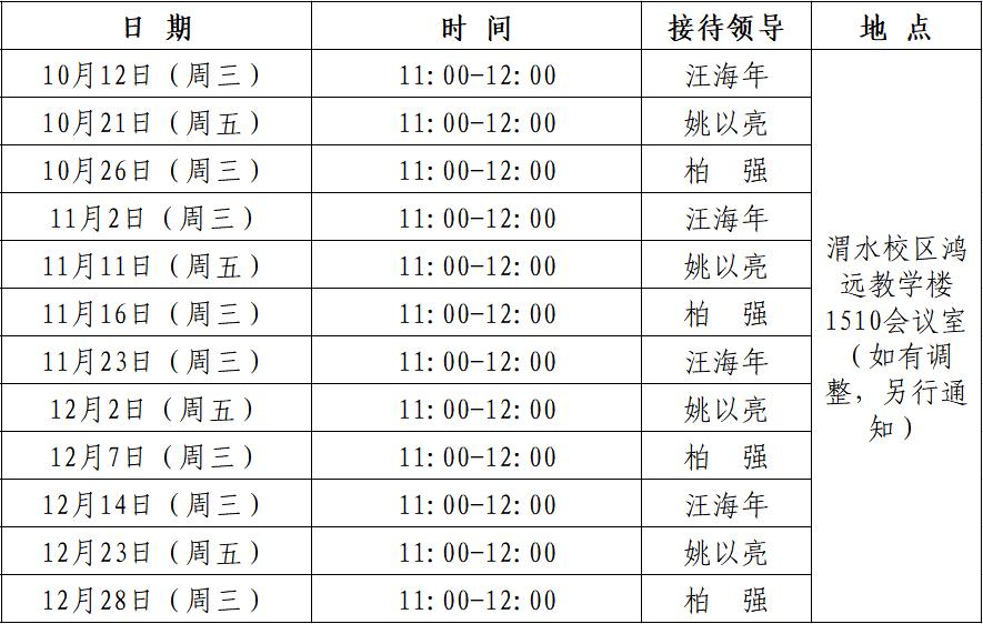 2.直接来访。师生员工可在院领导接待日当天直接来访,待预约事项接待完毕后方可进入。反映同一事项的群体应推选代表参加接待,代表人数一般不超过5人。