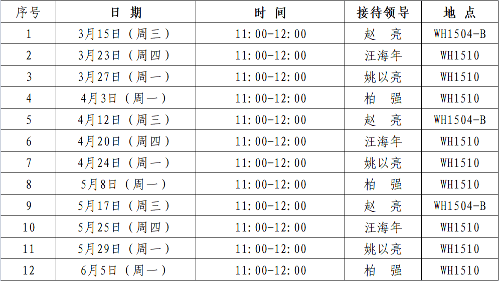 2.为保证接待日规范有序,提高工作效率,避免其他预约人员超时等待,请来访人员控制时间,应在30分钟内结束访谈。