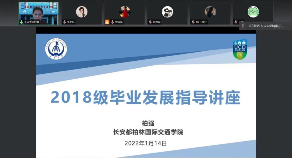毕业生发展意向进行了分析,并围绕考研复试注意事项、出国留学申请步骤、都柏林大学硕士申请及长安大学人才合作培养项目等方面进行了详细介绍。他结合目前毕业及疫情形势,探讨了未来各个发展方案的可行性,并就学生关心的毕业方向选择和考研复试技巧等问题做了详细讲解。柏强指出,当前正值应届毕业生升学和就业的关键时期,他鼓励大家把握时机,合理规划时间,明确发展目标,同时做好多手准备。