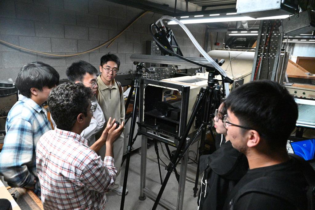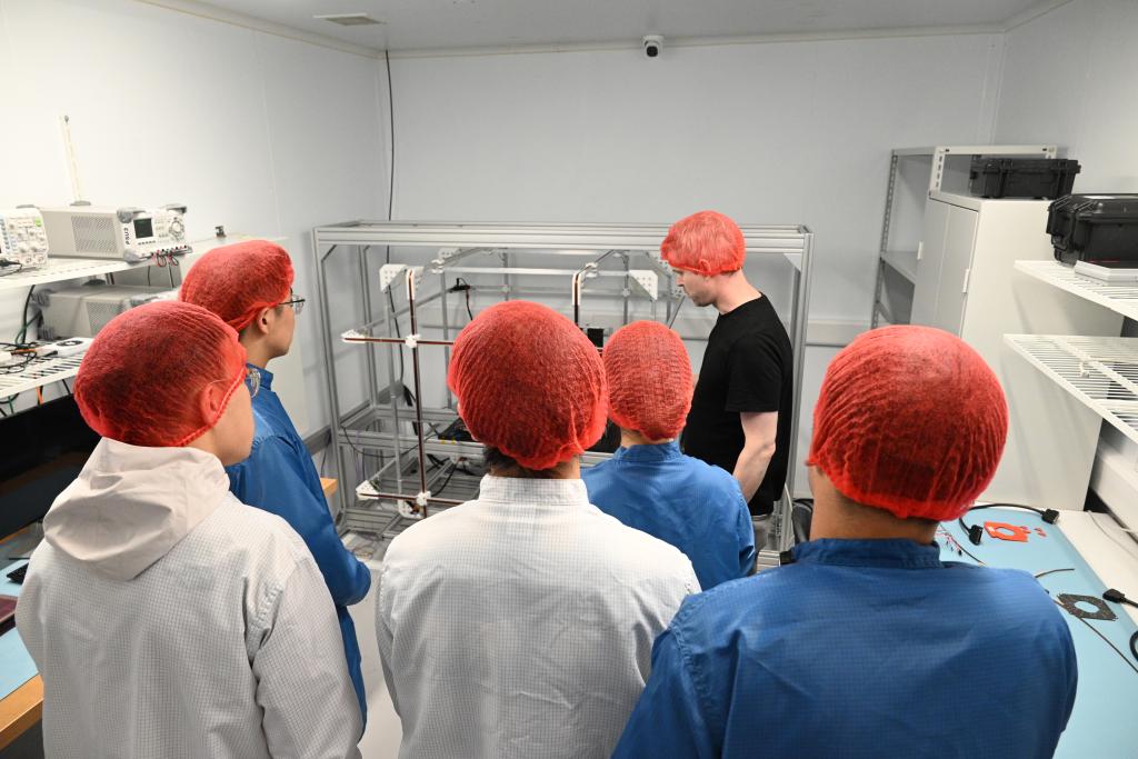 老师的带领下,车辆工程专业的学生分别参观了风洞实验室、流体成像工坊和纳米卫星实验室。