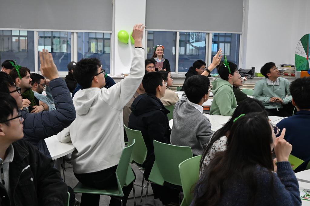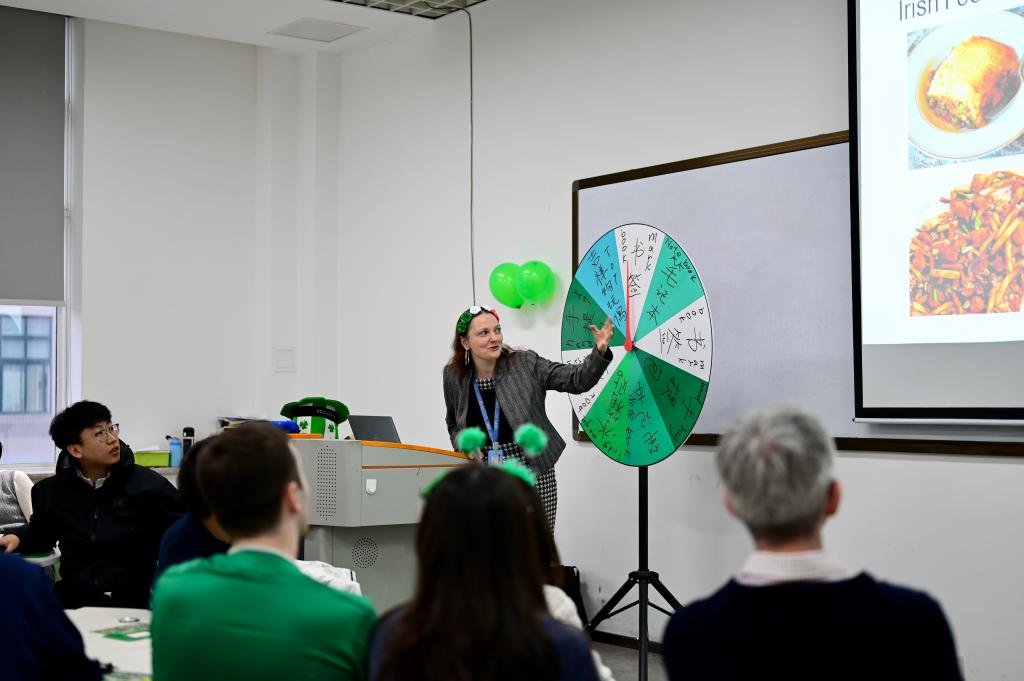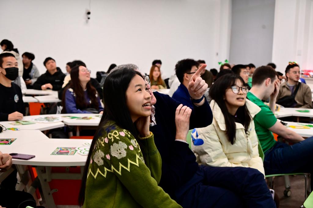 外籍教师Joe带来了精彩的爱尔兰文化知识小组PK答题环节。围绕爱尔兰地理风貌、人文历史、节日习俗、特色美食等内容,Joe精心设计了多道趣味问答题。现场师生自由组队、同台比拼,大家争相抢答、默契配合,在紧张而欢乐的氛围中不断碰撞思维火花。