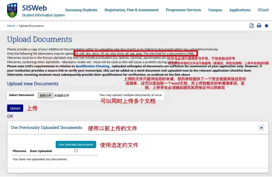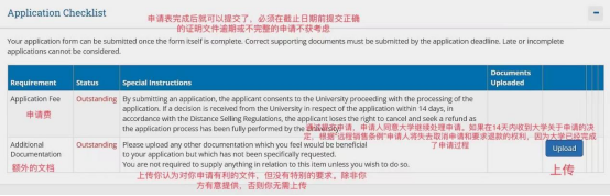 注意:最后一项为申请材料列表(Application Checklist),须在此处上传材料。上传文件建议使用PDF格式,每个文件用英文命名是什么内容,比如:UCD academic record, UCD graduation certificate, Curriculum Vitae等等。