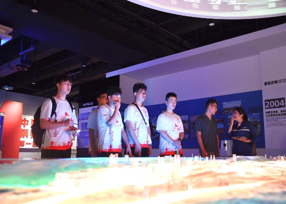 实践队首先来到马鞍山城乡规划展示馆,参观了城市荣誉、城市区位、城市足迹、城市风貌和城市规划演变历程等板块,学习马鞍山市致力打造生态优、产业强、活力足、城乡美、百姓富的长三角“白菜心”的发展理念,了解马鞍山市由“滨江不见江”的能源城市转化为“滨江山水园林”的旅游城市的转型成效。