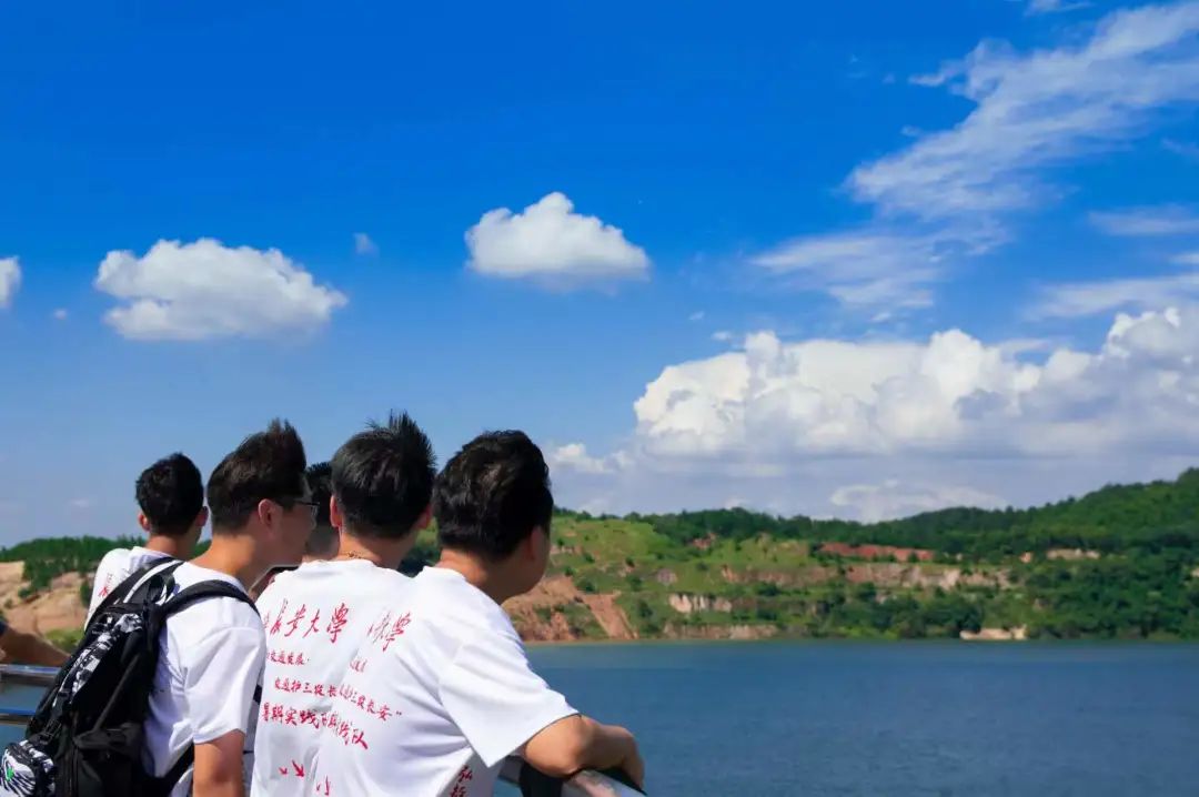 国之重器,功勋马钢。实践队员首先参观了马钢展示馆“抚今追昔,先行者们”、“燃情岁月,创业者们”、“砥砺而行,奉献者们”、“追求卓越,创新者们”四个展区,见证了马钢人艰苦奋斗、无私奉献光荣传统,目睹了马钢集团从“制造”走向“智造”的华丽转变。据工作人员介绍,马钢积极践行“两山论”,“两化融合”促进企业节能减排,打造绿色城市钢厂,提升环境绩效。凹山铁矿作为全华东最大的露天铁矿,在一百年来,高约180余米的凹山被开采成-210米、长轴约1100米、短轴800余米的矿坑。经过近几年实施的生态修复,凹山采场已嬗变为一座秀美的人工湖,有力表达了马鞍山市和马钢人逐绿而行,全面打赢新时代“向山大会战”的决心。
