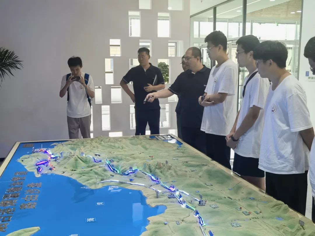 第三站,实践队员来到东方海上“丝绸之路”的首航地——烟台,对烟台港西港区、山东原油管道运输网络、潍烟高铁工程开展调研学习。技术人员通过模拟沙盘的方式生动呈现西港区原油储运管道系统,使实践队员们更清晰的认知西港区原油运输的基本线路,深刻体会烟台港在国家“一带一路”建设过程中发挥的重要作用。在烟台港的“最强大脑”——生产调度中心,实践队员深刻感悟到烟台港西港区的管道运输系统高度智能化、数字化的特性,以及中国绿色港口建设的全新智慧。而路上最便捷的交通工具——高铁,在烟台的发展规划中也起到重要的作用,在中建八局工程人员带领下,实地参观高铁建设施工现场,学习如何将课本理论应用在实践当中。从轨道交通为突破,带动区域协调发展,打造半岛1小时、省内2小时、首都4小时的高质量交通圈,真正发挥现代化综合交通的带动作用。