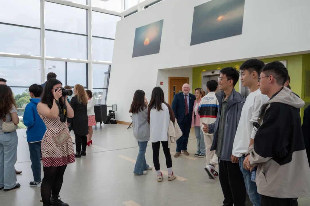 全体师生和何向东大使、副校长Dolores O'Riordan教授进行了合影,为本次暑期研学活动留下了珍贵的纪念。欢迎会后,在场的都柏林大学老师和同学进行了亲切交流,24直播网