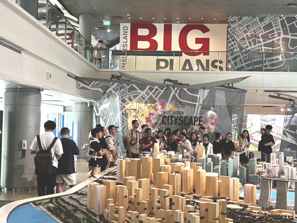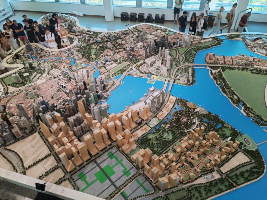 新加坡城市规划展览馆(Singapore City Gallery),是在新加坡城市重建局展示廊的基础上改造更新而来,从上到下三层楼,共计10个主题区和40余个视听和互动展览馆,是新加坡最大的博物馆,它系统介绍了“花园城市”新加坡的发展历程,旨在展示新加坡过去 40 多年来所经历的巨大变迁和在土地运用与策划过程中所面对的问题,讲述了新加坡城市布局的发展历程,展现在城市规划方面所面临的挑战和困境,介绍了应对困局的创新方案,记载了一代代人为新加坡城市规划付出的努力。在这里,同学们可以看到许多精美的模型和展览,展览馆利用庞大的建筑模型、独特的声光效果,栩栩如生地展示城市全景,同时提供多样化的互动活动,深入浅出地将复杂的内容带入体验中,展示了新加坡在过去几十年中如何从一个渔村发展成现代化都市的过程,解释了城市规划的重要性以及如何更好地利用土地和资源,让大家亲自动手尝试城市规划,思考新加坡城市规划不同的可能性。