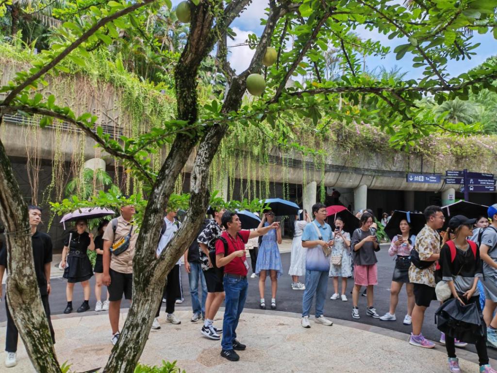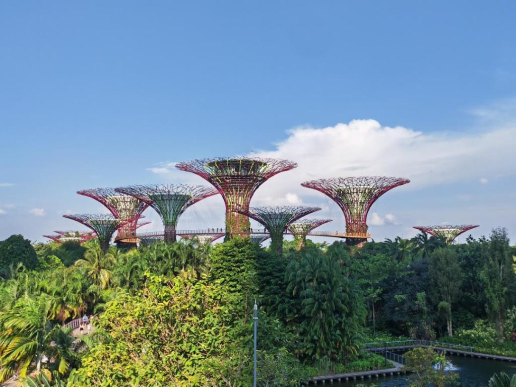 滨海湾花园是一个荣获多项国际奖项的世界级植物园。它分为几个独特的花园区域,每个区域都有不同的植物和景观设计。园区内最引人注目的是超级树,这些高耸的金属框架结构覆盖着各种植物,同时还结合了节能和生态可持续发展的特点。同学们在超级树上漫步,欣赏到壮观的花园景色,同时参观花园内的露天剧场、湖泊和人工瀑布。