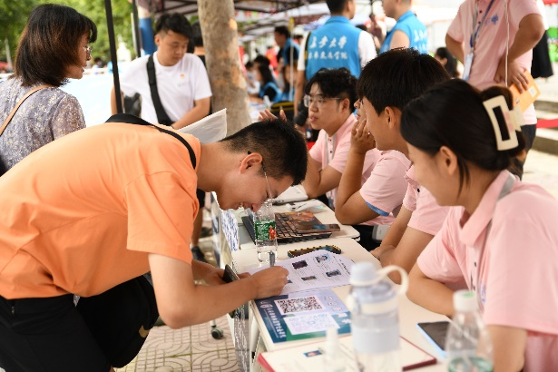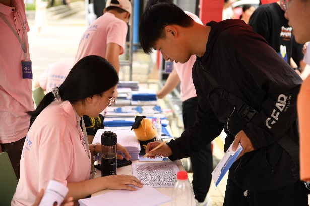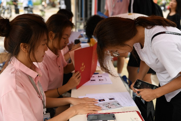 帆布袋、定制文化衫、专属卡套、新手手册、定制笔记本等等暖心礼品。同时还在迎新点旁设置了签名墙、背景墙、路标,为每一位新生及家长“打卡”拍照,纪念令人感动的每一个瞬间。