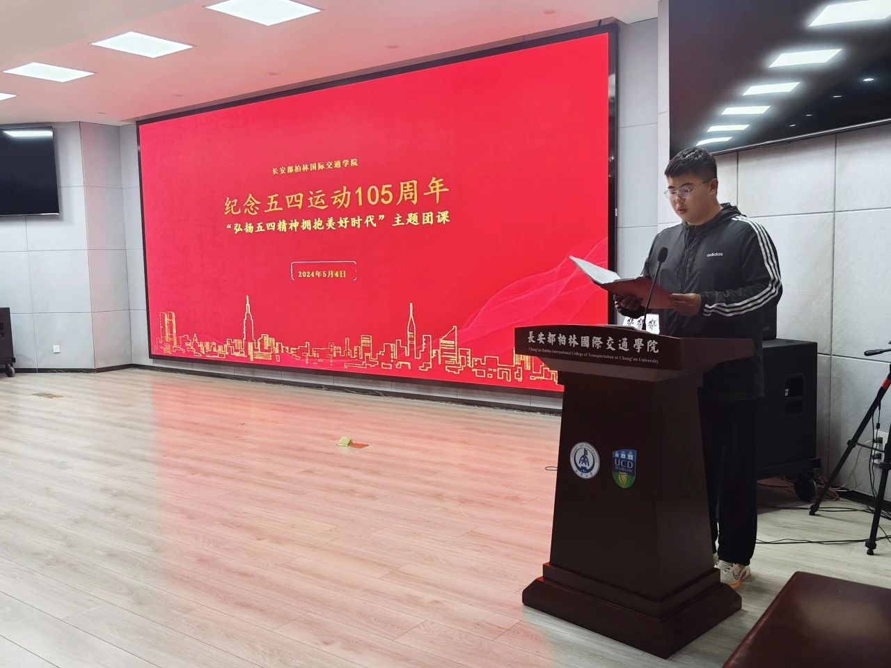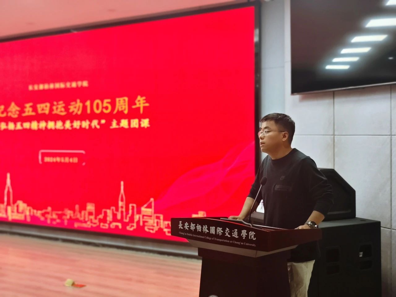 于鸿远教学楼四楼报告厅举办“弘扬五四精神,拥抱美好时代”纪念五四运动105周年主题团日活动。24直播网
