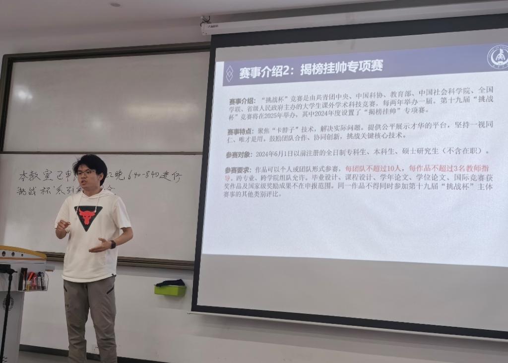 在鸿远教学楼WH1406教室举办“挑战杯”课赛立项及专项赛事宣讲会。24直播网