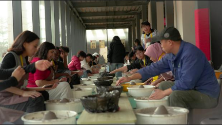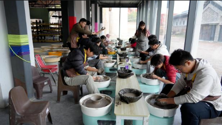 在耀州窑博物馆,实践队员们系统了解了耀州窑千年烧造历史、工艺演变及其在中国陶瓷史上的重要地位。通过参观现代化陶瓷工厂,直观感受传统工艺与现代科技的融合发展。在非遗体验环节,同学们揉泥、拉坯、修胚,在实践操作中深刻感受传统制陶技艺的魅力;在非遗大师刻花室,学生骨干们近距离领略了国家级非物质文化遗产——耀州窑刻花技艺的精湛绝伦,对“工匠精神”和非物质文化遗产保护有了更真切的感悟。