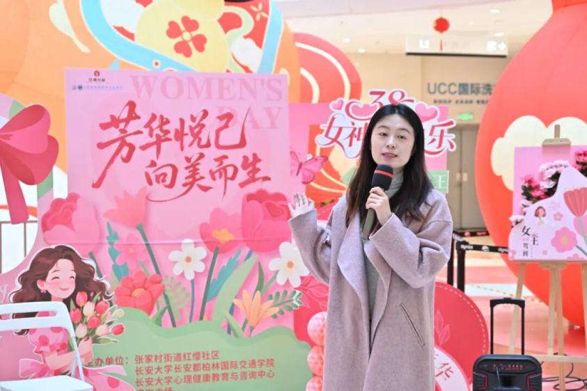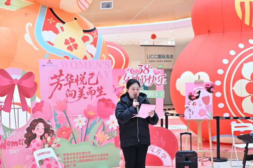 联合长安大学心理健康教育与咨询中心、张家村街道红缨社区、碑林区法院等单位,在盛安广场共同举办“芳华悦己・向美而生” 妇女节主题活动。这场集趣味、创意与赋能于一体的特别活动,吸引了近百名社区居民热情参与。