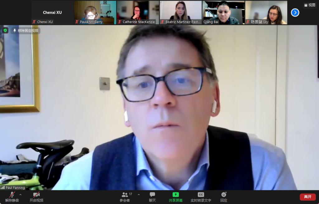 补考工作面临严峻挑战。经过中外双方反复沟通,相互协作,克服困难,最终于9月28日顺利完成所有中外双方课程补考工作。随后,他对三个中外合作办学专业2021-2022学年春季学期补考成绩总体情况进行了介绍,双方委员对各门课程补考成绩审议通过。随后Paul Fanning在都柏林大学成绩报告系统内在线向各位参会委员展示了各年级各专业课程的补考成绩分布情况。
