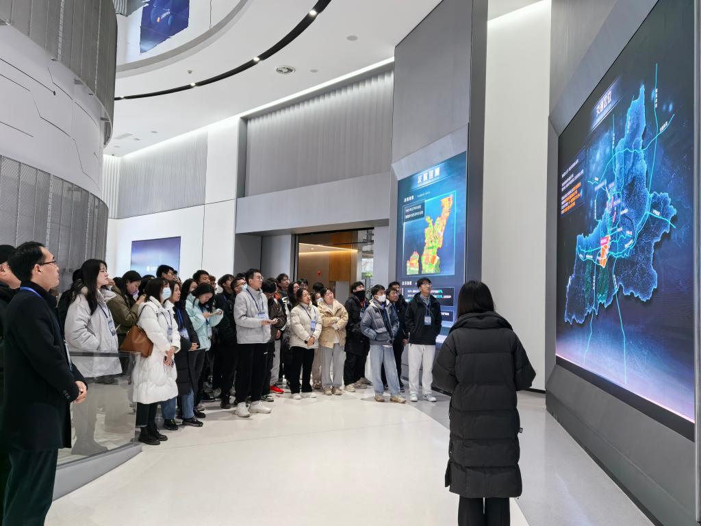 丝路科学城是西安高新区的核心承载区,定位为具有全球影响力的硬科技创新高地、一带一路国际科学交流中心、秦创原创新驱动平台建设的样板示范区和西安建设综合性国家科学中心的核心。2021年开始,西安高新区开启了"实力高新、科创高新、品质高新、幸福高新"的建设新征程,并启动了丝路科学城的建设。丝路科学城总规划面积220平方公里,位于高新区中心位置,是西安科技创新带的重要节点。在发展中心,同学们通过介绍了解到丝路科学城总体空间结构建设目标,建设规划,建设进度等项目的基本信息。应用于建设规划的数据可视化技术,让同学们对丝路科学城的建设规划有了更加深刻的理解。