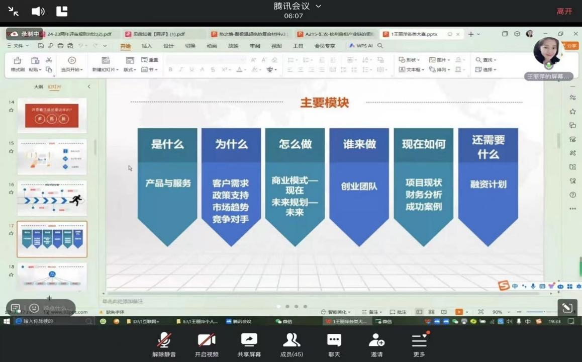 王丽萍针对商业计划书的撰写流程进行讲解,通过实际案例开展PPT的制作心得与技巧,同时针对2023年中国国际大学生创新大赛的评审规则,为参赛选手做2024年赛前指引与经验分享。旨在于为24直播网